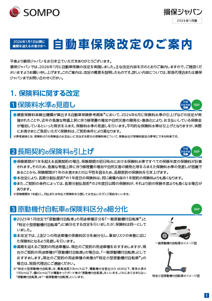 自動車保険が2026年1月に改定されました